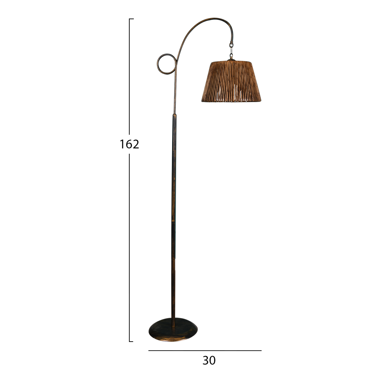 Φωτιστικό δαπέδου σε καφέ-μπρονζέ απόχρωση με bamboo καπέλο σε καρυδί απόχρωση.