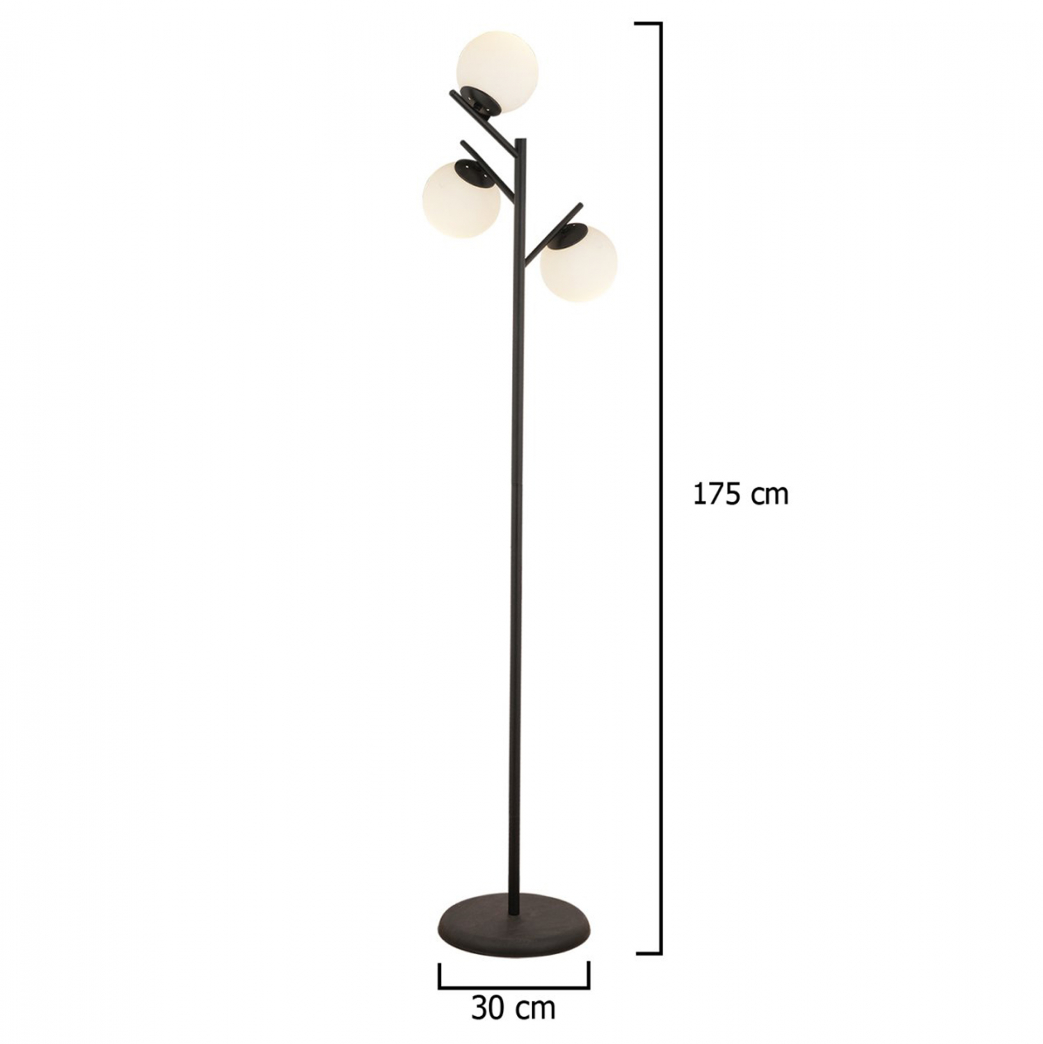 Φωτιστικό δαπέδου 3ΦΩΤΟ σε μαύρη απόχρωση με λευκούς γλόμπους.
