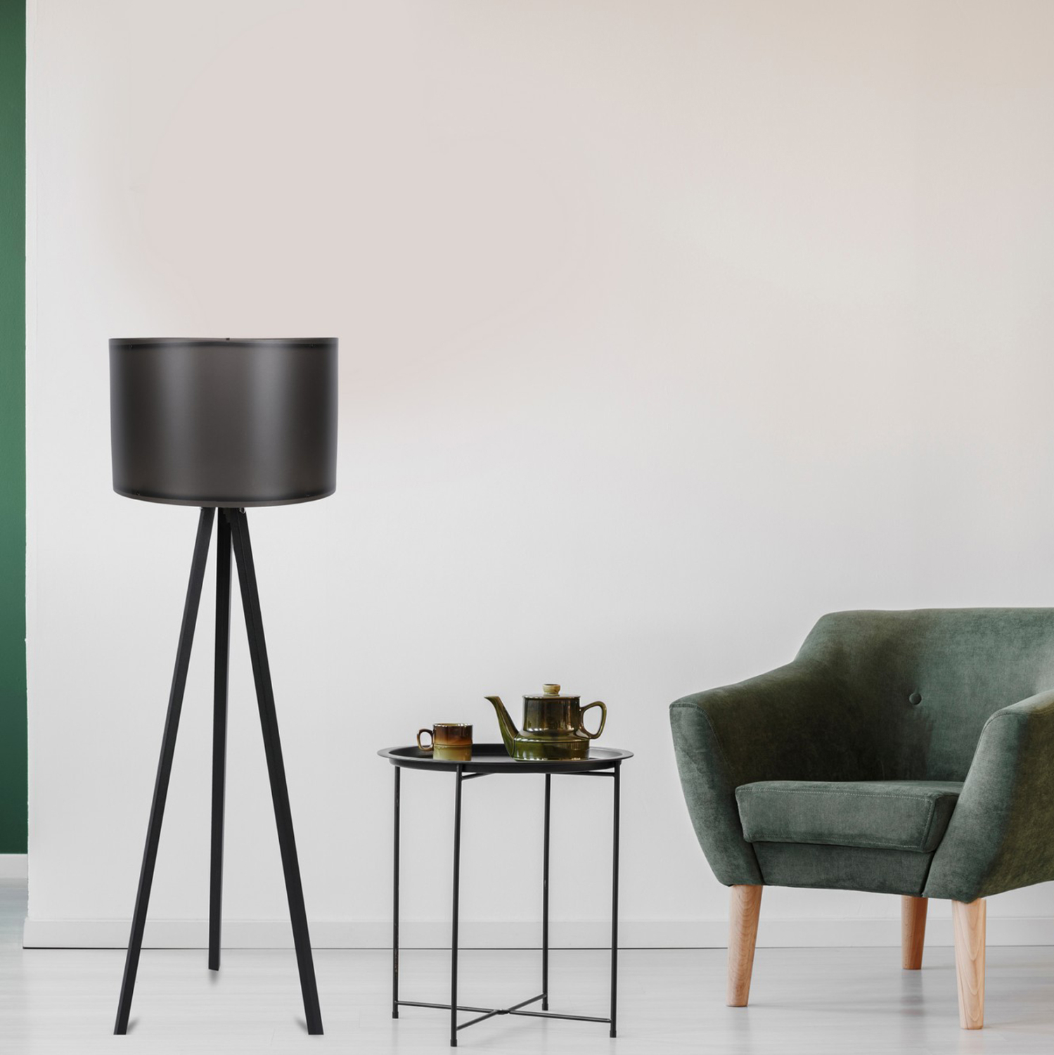 Μοντέρνο φωτιστικό δαπέδου, με ψηλά πόδια και ειδικό καπέλο που διαχέει αρμονικά το φως σε όποιον χώρο τοποθετηθεί.