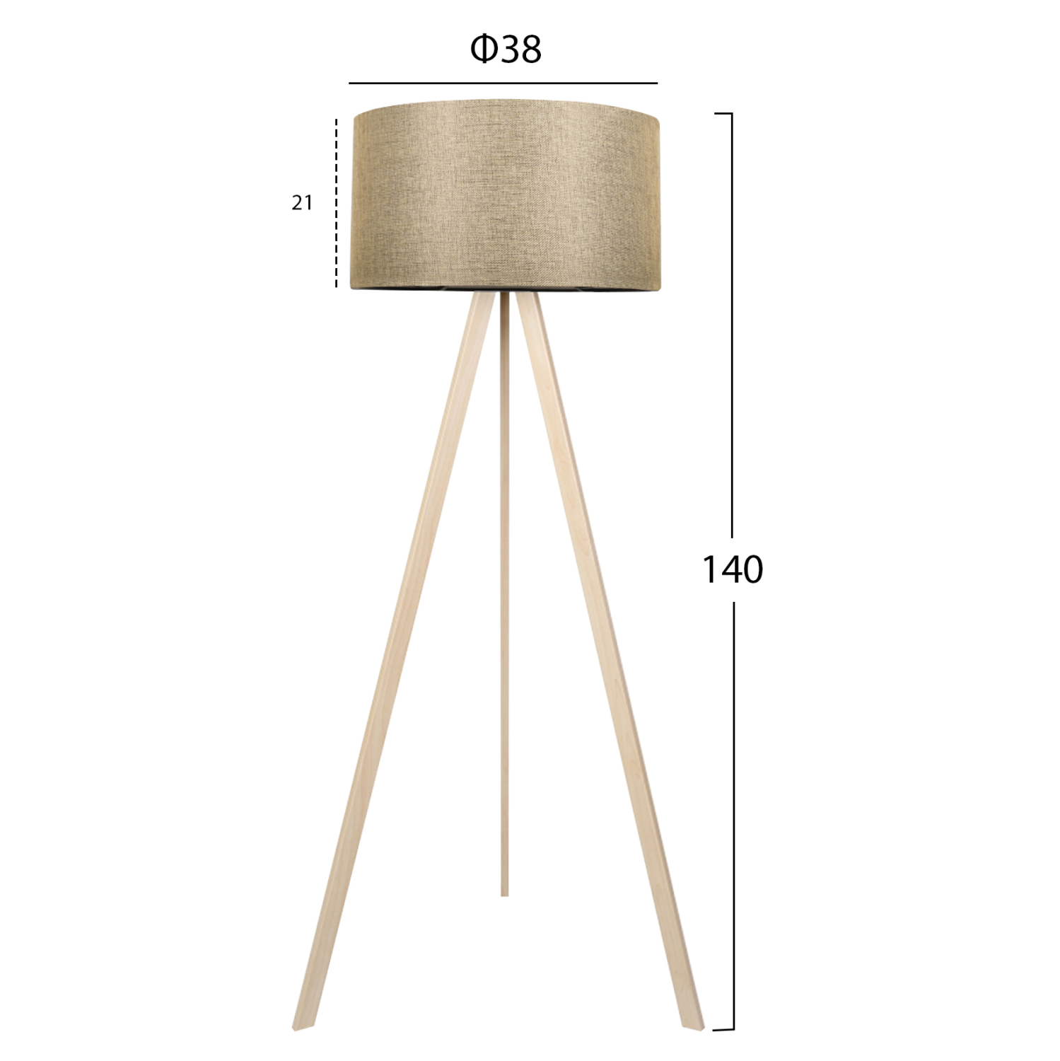 Φωτιστικό δαπέδου με τρίποδο από 100% MDF σε φυσικό χρώμα. Το κυλινδρικό «καπέλο» του φωτιστικού είναι σε χρυσοκαφετί απόχρωση. Ένα όμορφο φωτιστικό δαπέδου που θα δημιουργήσει την ατμόσφαιρα που πάντα φανταζόσασταν για τον χώρο σας, έτσι ώστε να φτιάξετε την δική σας γωνιά χαλάρωσης ή ακόμα και διακόσμησης. Διότι το φως, σημαίνει κάτι περισσότερο από ένα φωτιστικό. Σημαίνει διακόσμηση, ατμόσφαιρα, τέχνη, μεράκι, και φυσικά επιστήμη.