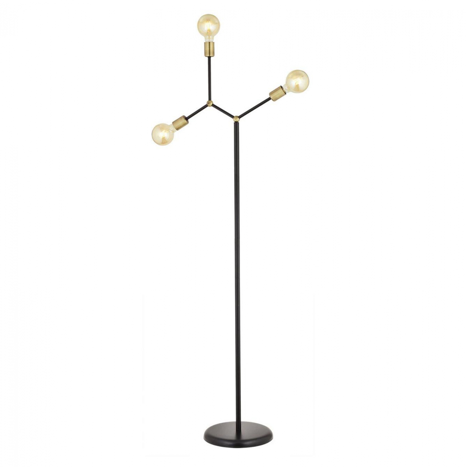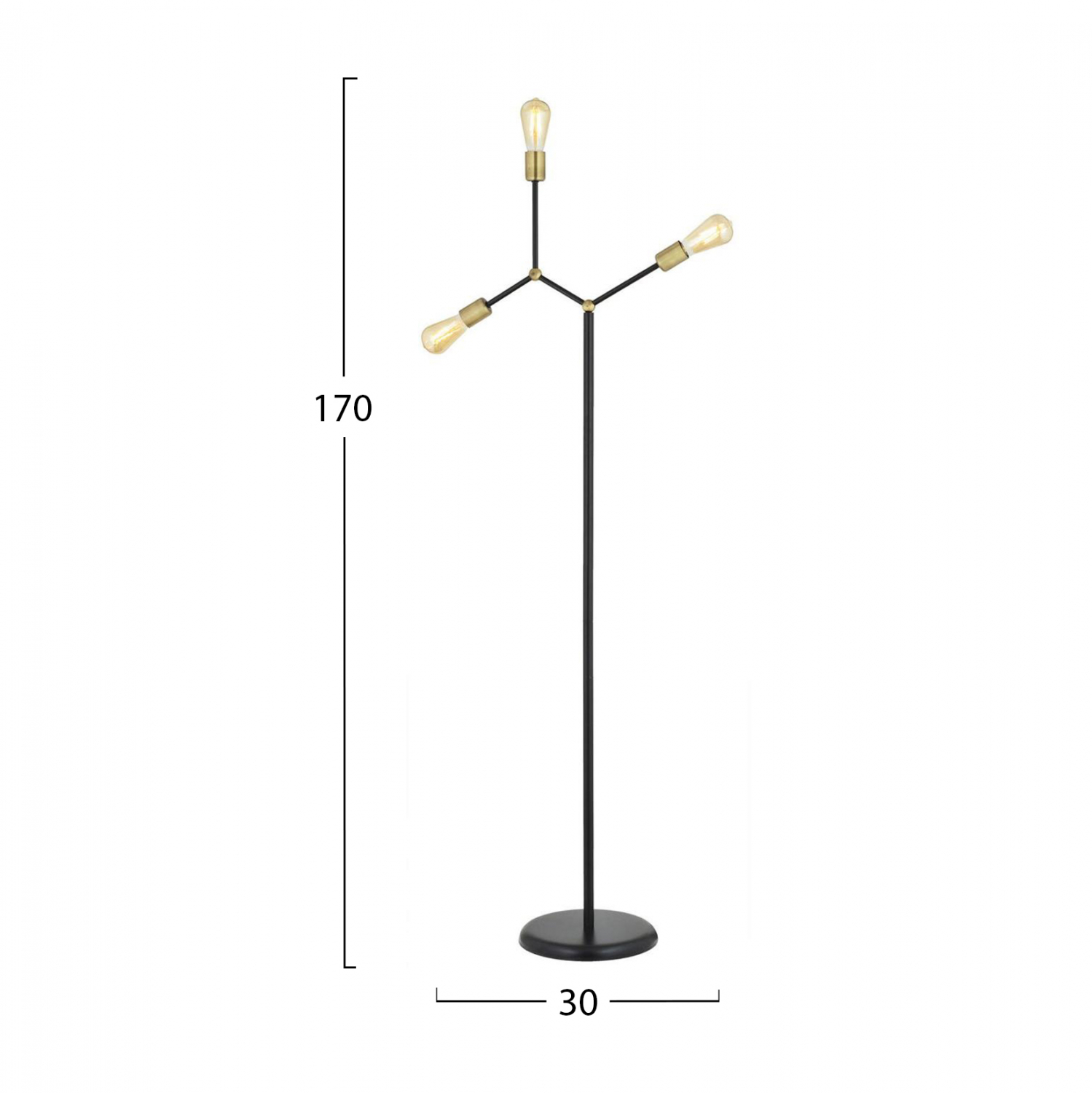 Φωτιστικό δαπέδου 3φωτο σε μαύρη απόχρωση με χρυσές λεπτομέρειες.
