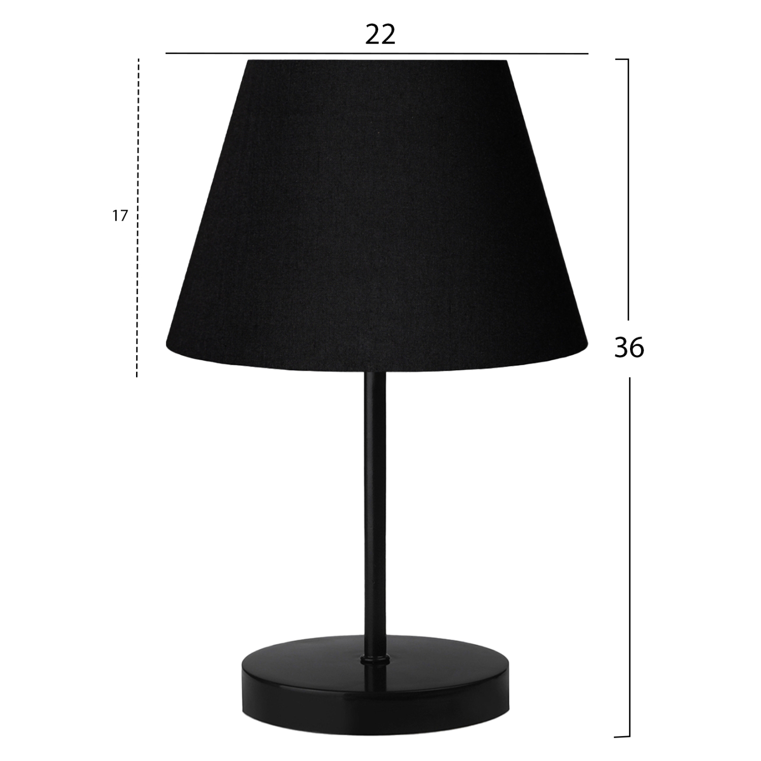 Πρόκειται για ένα λιτό επιτραπέζιο διακοσμητικό φωτιστικό. Το «καπέλο» του φωτιστικού έχει σχήμα ανοιχτής καμπάνας (τραπεζοειδές) σε μαύρο χρώμα, ενώ η βάση στήριξης είναι μαύρη και κυκλική. Ένα λιτό και κομψό επιτραπέζιο φωτιστικό που διαχέει γλυκά το φως και δημιουργεί την ατμόσφαιρα που πάντα φανταζόσασταν για τον χώρο σας, έτσι ώστε να φτιάξετε την δική σας γωνιά χαλάρωσης ή ακόμα και διακόσμησης. Διότι το φως, σημαίνει κάτι περισσότερο από ένα φωτιστικό. Σημαίνει διακόσμηση, ατμόσφαιρα, τέχνη, μεράκι, και φυσικά επιστήμη.
