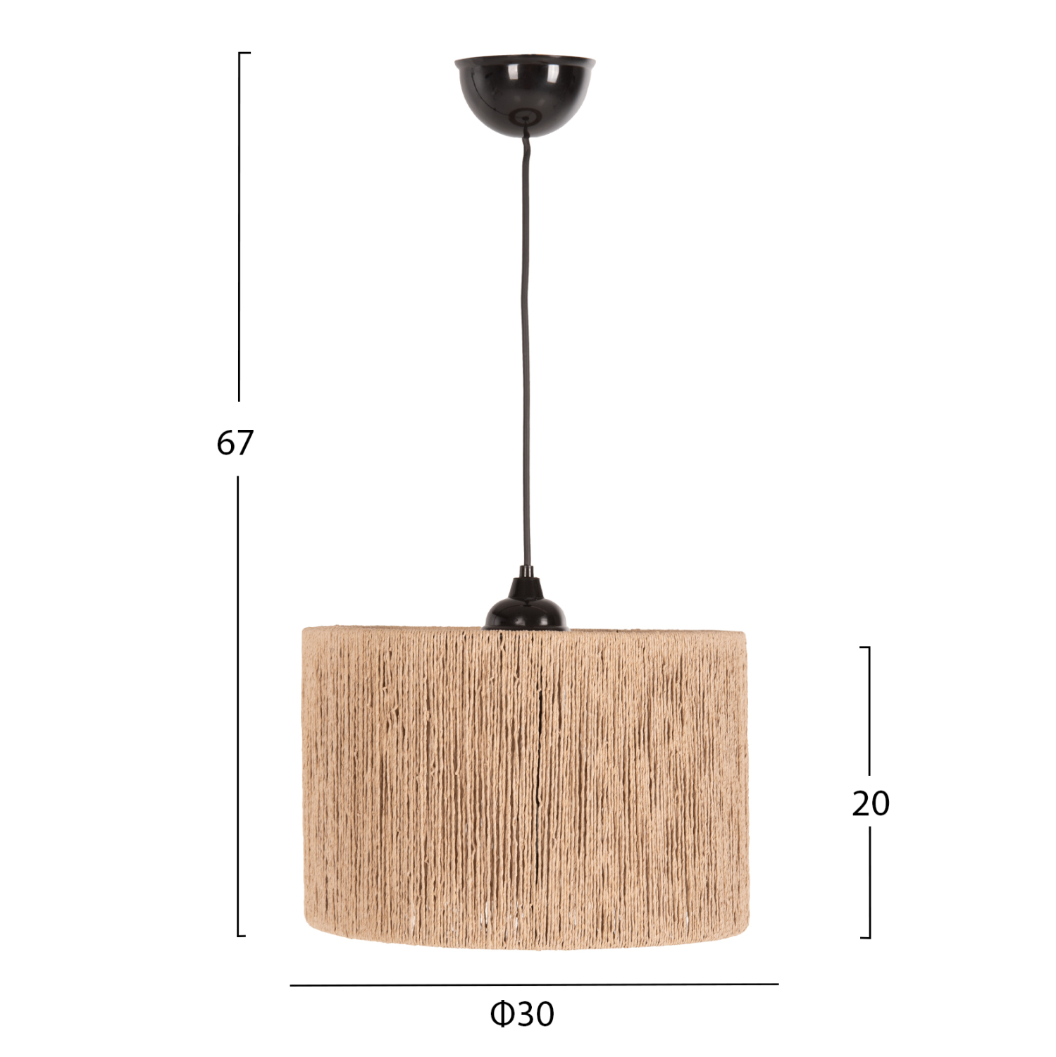 Αφήστε το φως να απλωθεί στον χώρο με ένα πρωτότυπο και φινετσάτο χειροποίητο μονόφωτο οροφής, ολοκληρώνοντας την διακόσμησή σας. Το κυλινδρικό «καπέλο» του φωτιστικού αποτελείται από μεταλλικό σκελετό επενδυμένο με επεξεργασμένο στρογγυλό paper rope σε ΦΥΣΙΚΟ χρώμα ειδικό για φωτιστικά, και είναι η επιτομή του μοντέρνου design.