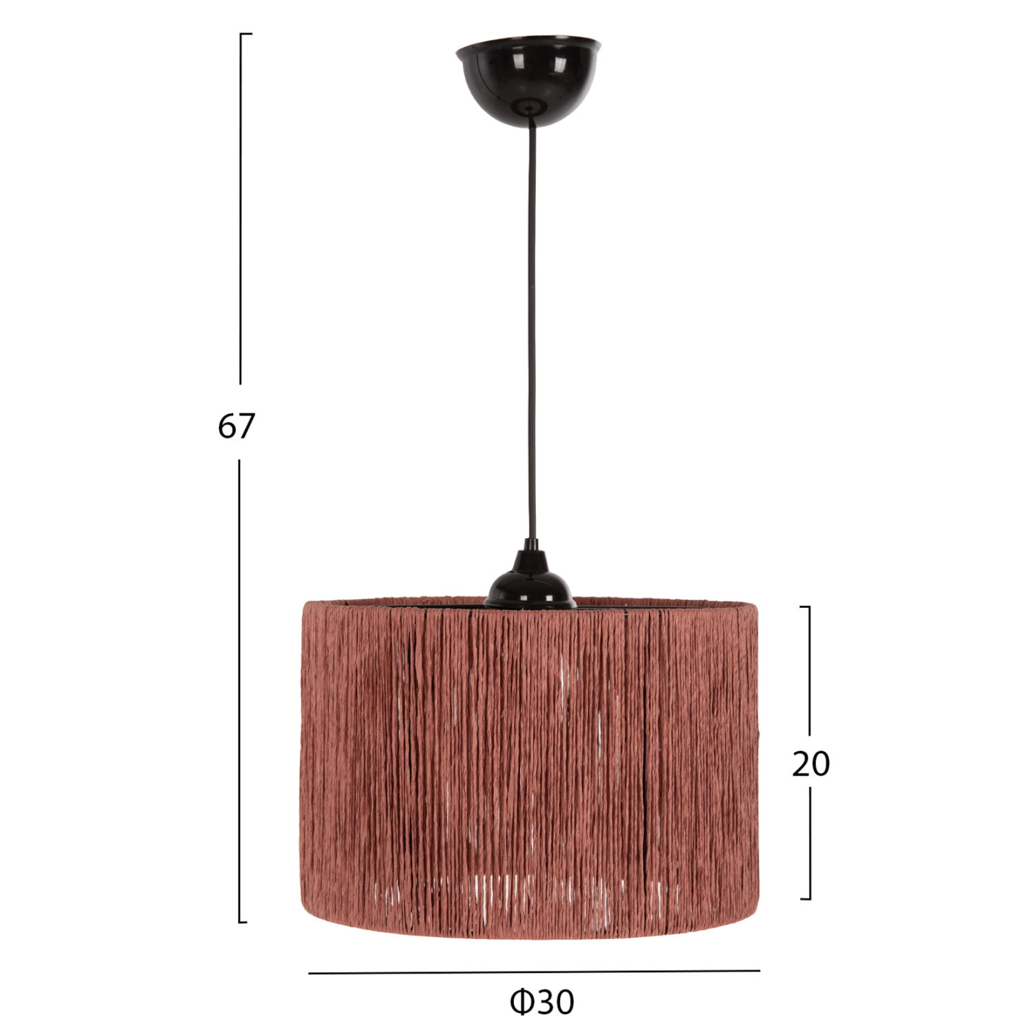 Αφήστε το φως να απλωθεί στον χώρο με ένα πρωτότυπο και φινετσάτο χειροποίητο μονόφωτο οροφής, ολοκληρώνοντας την διακόσμησή σας. Το κυλινδρικό «καπέλο» του φωτιστικού αποτελείται από μεταλλικό σκελετό επενδυμένο με επεξεργασμένο στρογγυλό paper rope σε ΣΟΜΟΝ χρώμα ειδικό για φωτιστικά, και είναι η επιτομή του μοντέρνου design.