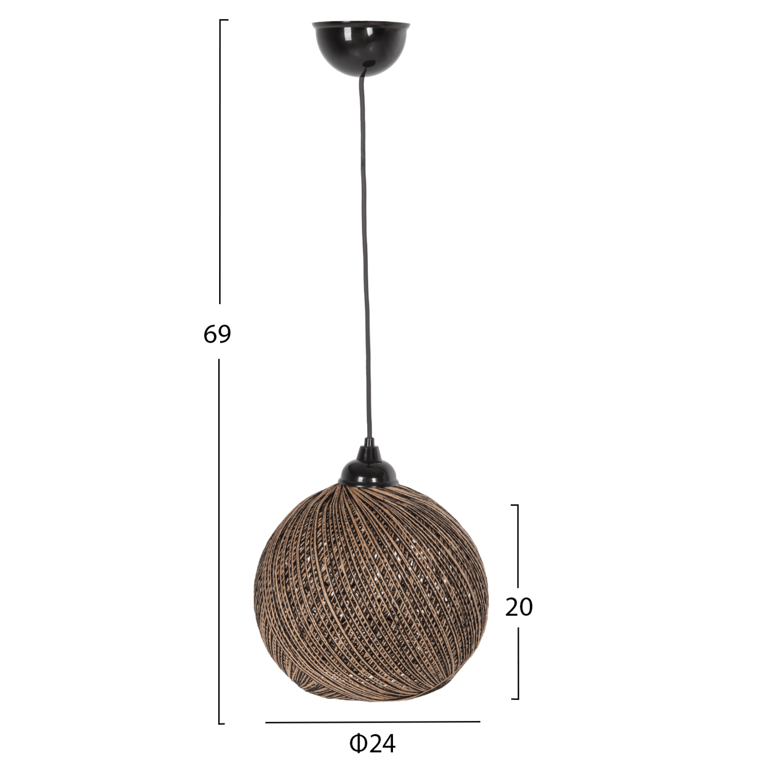 HM7645.03- Kρεμαστό φωτιστικό—- Αν επιθυμείτε να διακοσμήσετε το χώρο σας με ένα φωτιστικό σε boho στυλ, αυτό είναι η πιο σωστή επιλογή. Είναι ένα μονόφωτο φωτιστικό σε σχήμα σφαιρικό και είναι επενδυμένο με λεπτό πλεκτό σκοινί, υψηλής ποιότητας και αντοχής στο χρόνο, σε ΧΡΥΣΗ (σαν πατίνα) απόχρωση. Tο ύψος του φωτιστικού προσαρμόζεται ανάλογα με τον τρόπο τοποθέτησης, έτσι ώστε να το διαμορφώσετε στο ύψος που σας ικανοποιεί.