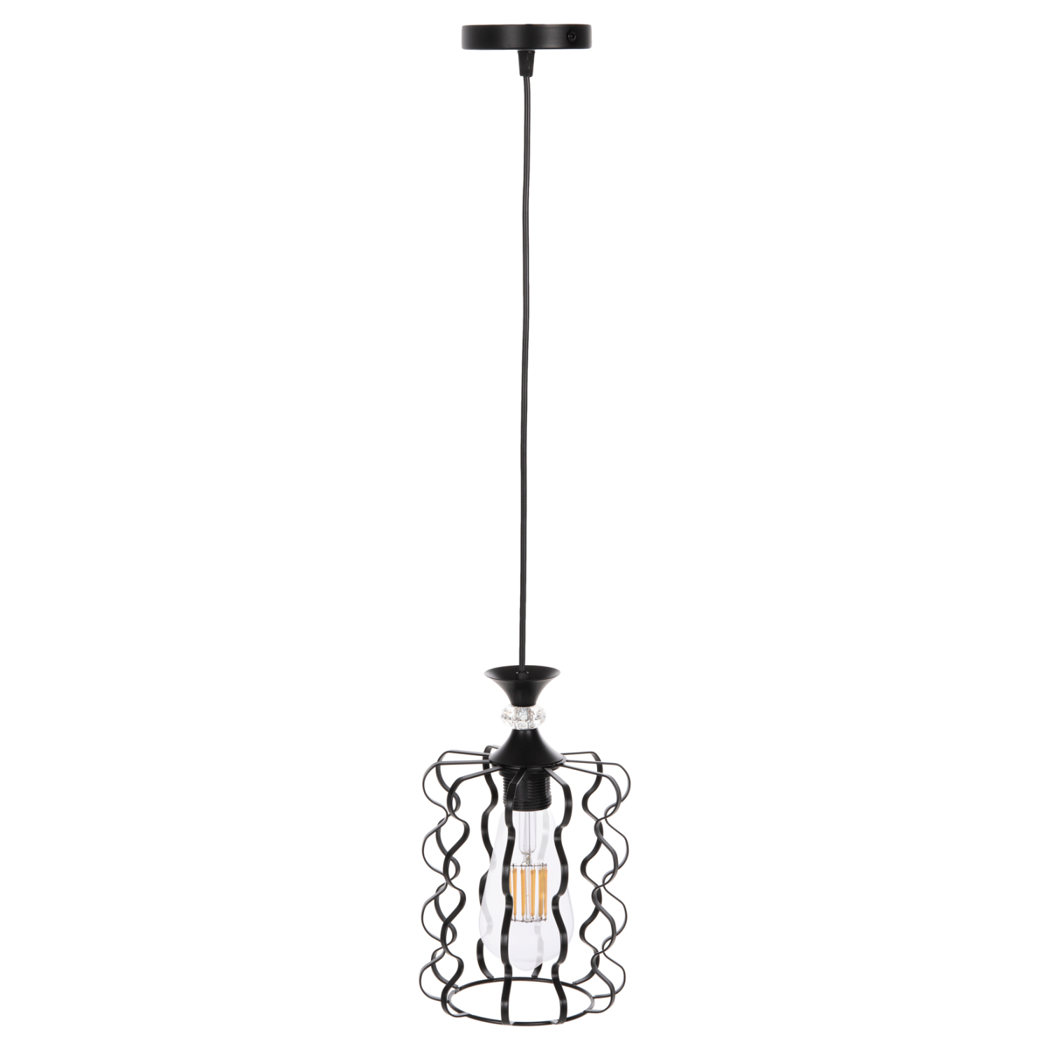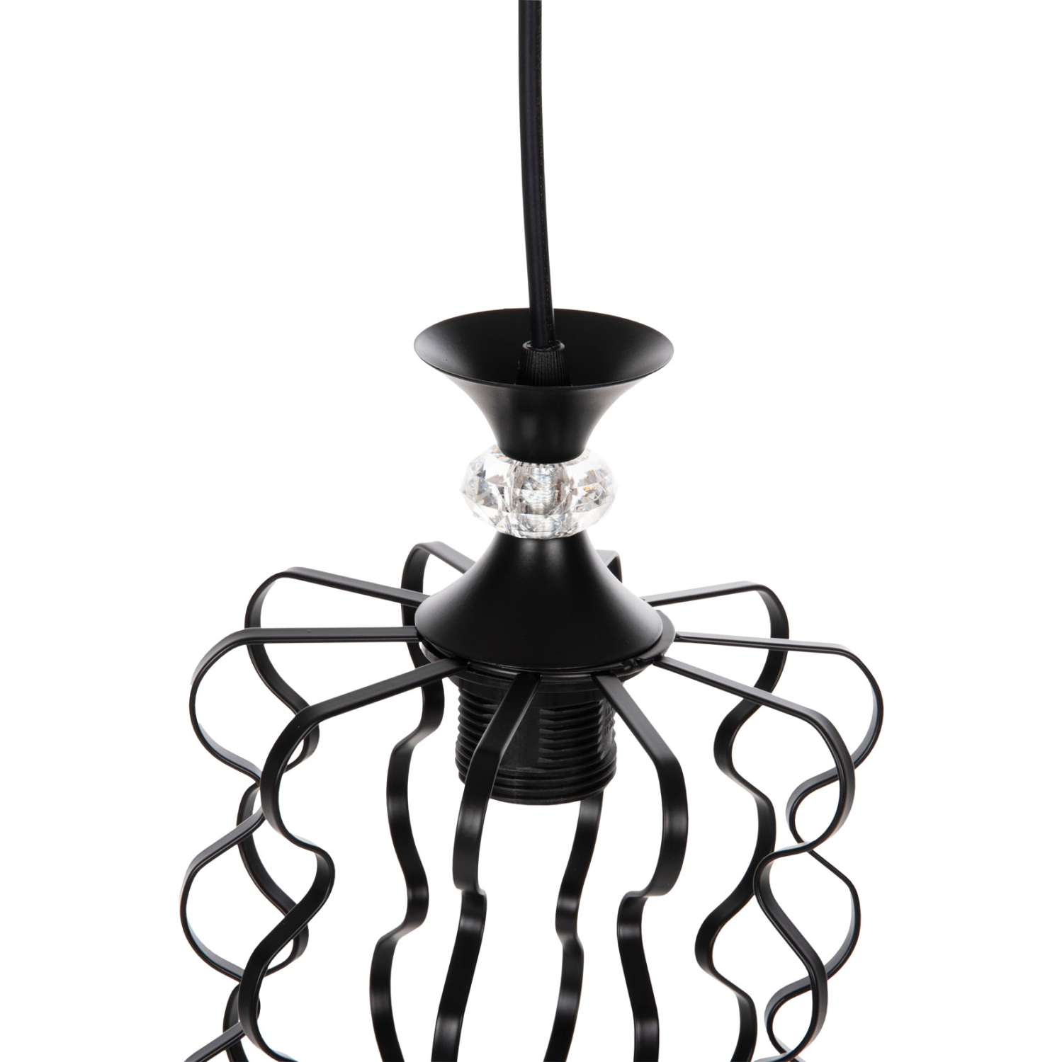 Ολόκληρο το φωτιστικό είναι από μέταλλο, όπως και η στρογγυλή βάση κρέμασης στην οροφή.