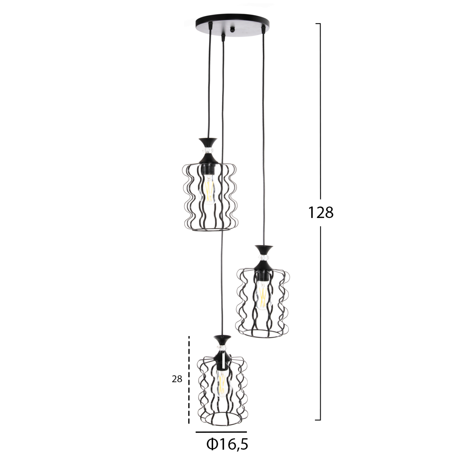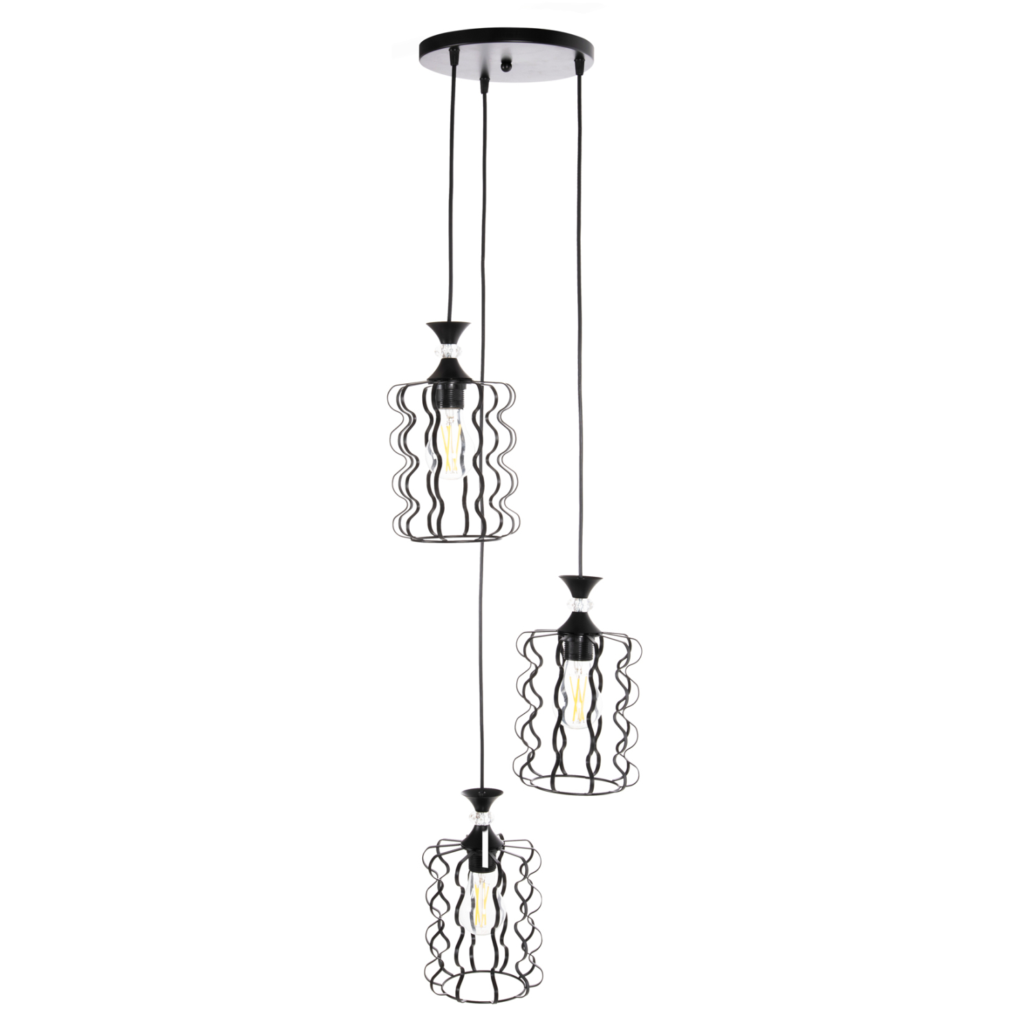Ανακαλύψτε αυτό το νέο μας κρεμαστό 3-φωτο οροφής και ολοκληρώστε την διακόσμησή σας. Πρόκειται για ένα φωτιστικό με ΜΑΥΡΑ μεταλλικά καπέλα σε μοντέρνα υλοποίηση και αποτελεί την τελευταία τάση στα φωτιστικά οροφής.