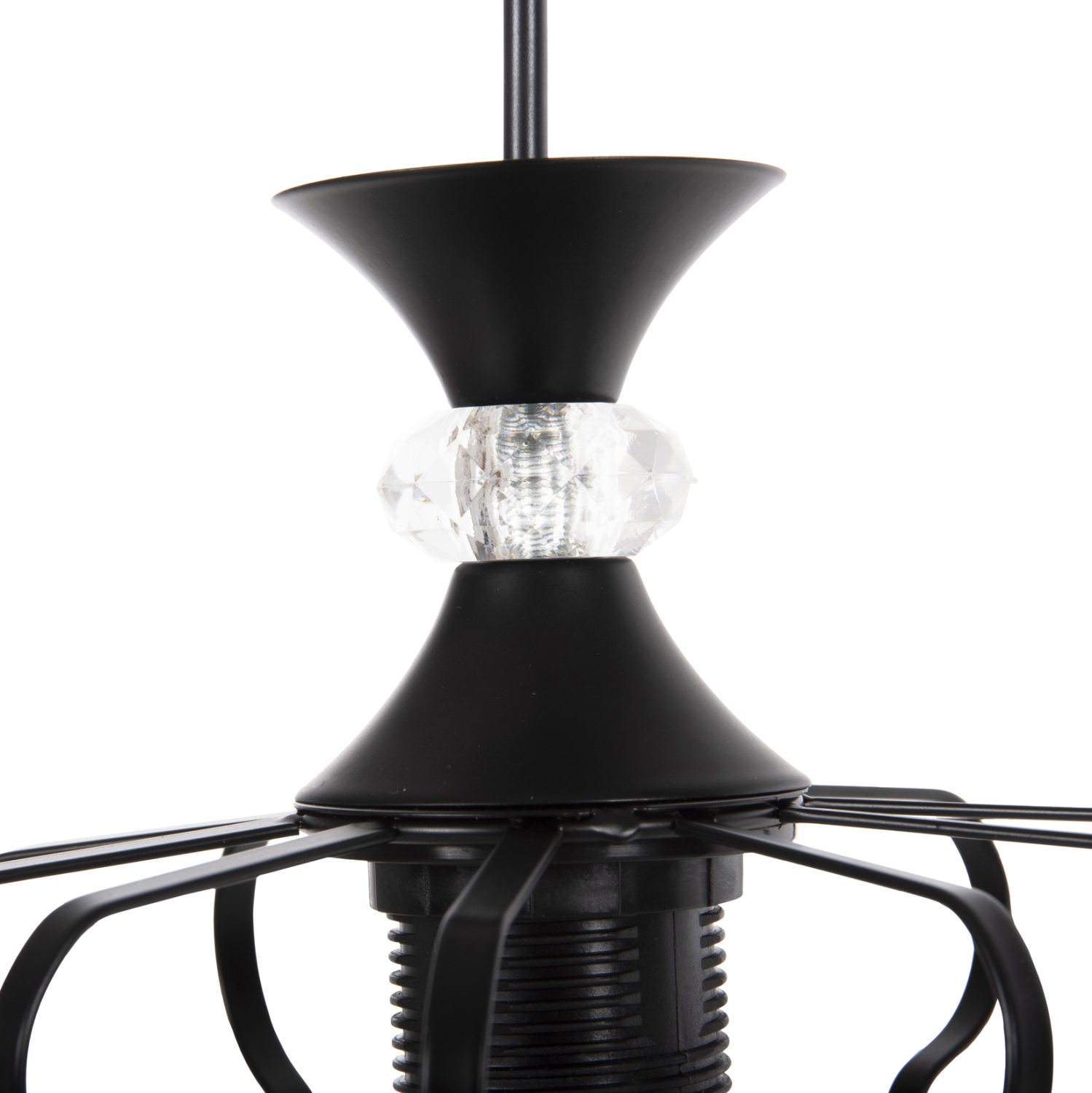 Ολόκληρο το φωτιστικό είναι από μέταλλο, όπως και η στρογγυλή βάση κρέμασης στην οροφή.