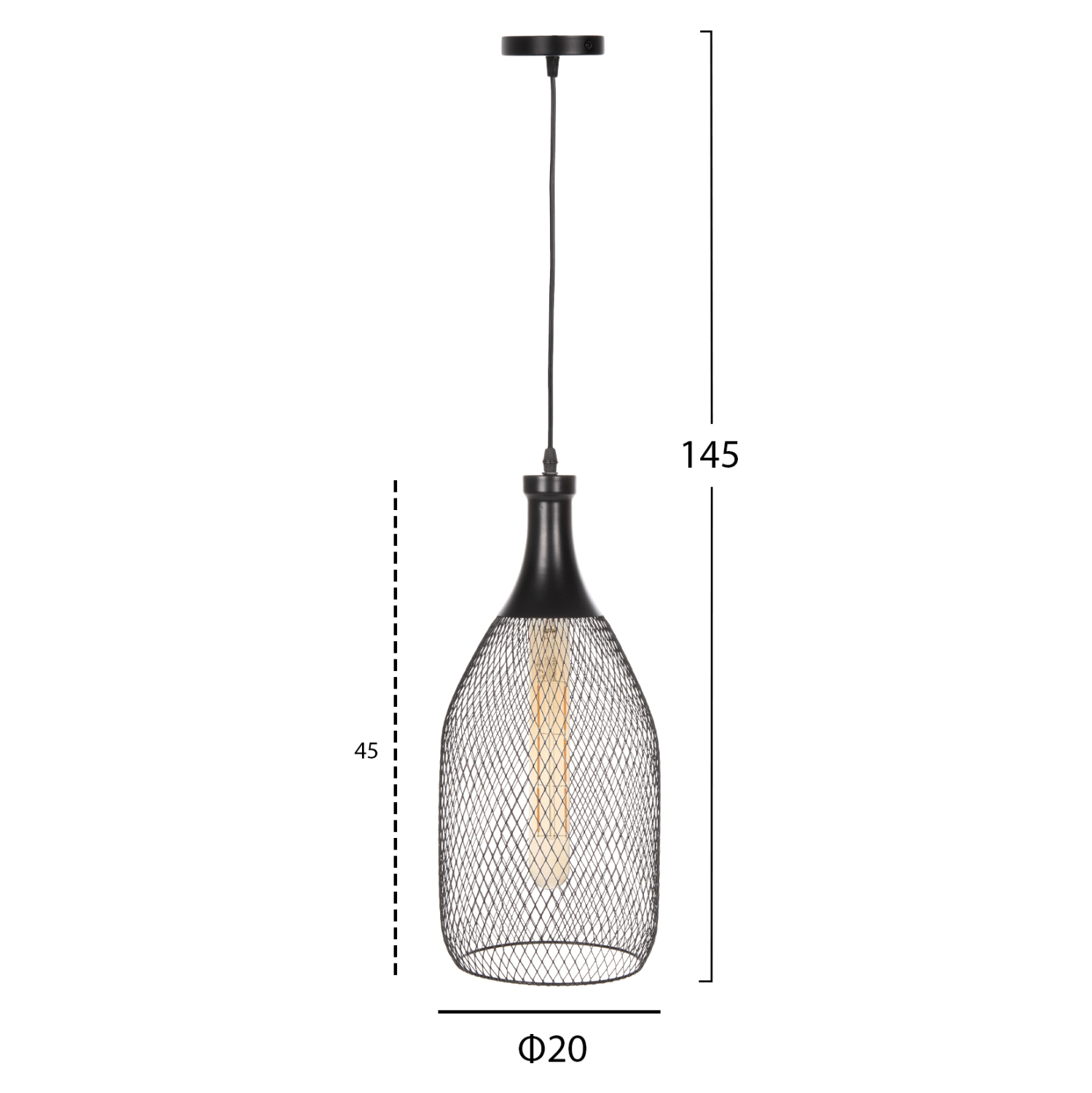 Το HΜ4105 είναι ένα νέο και φινετσάτο μονόφωτο φωτιστικό που θα ολοκληρώσει ή θα ανανεώσει τη διακόσμησή σου. Το κρεμαστό αυτό φωτιστικό έχει καπέλο σε ΜΑΥΡΟ χρώμα με σχήμα μπουκαλιού σε μεταλλική δικτυωτή υλοποίηση, ενώ η όλη κατασκευή είναι διαχρονική και καλαίσθητη.