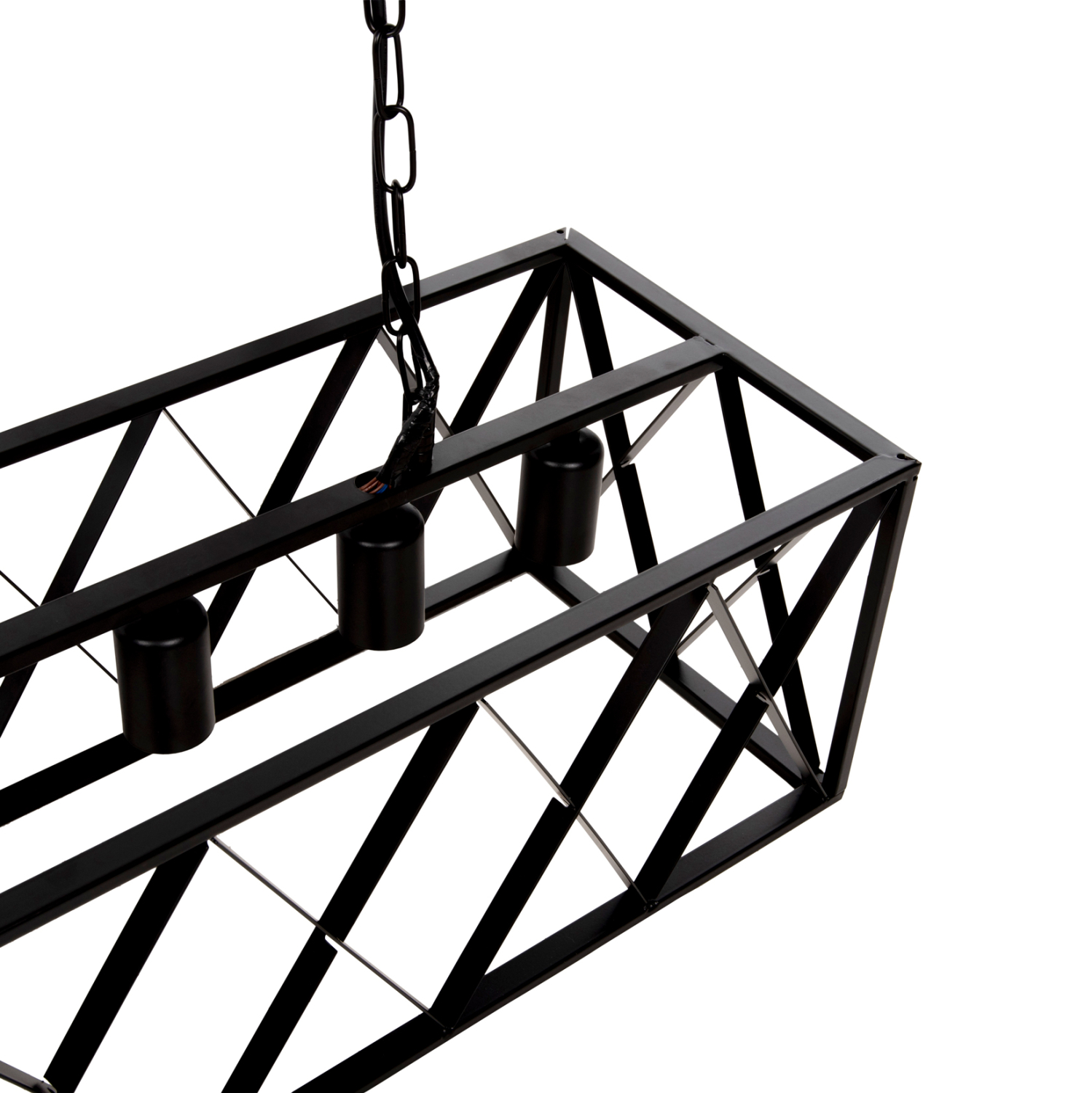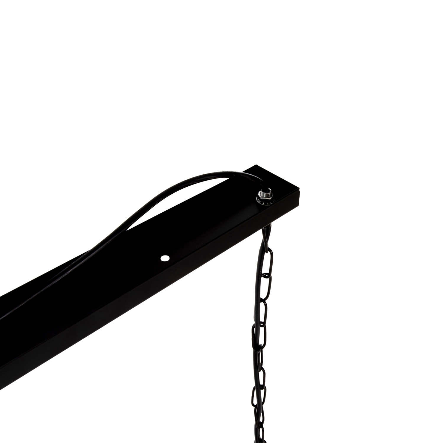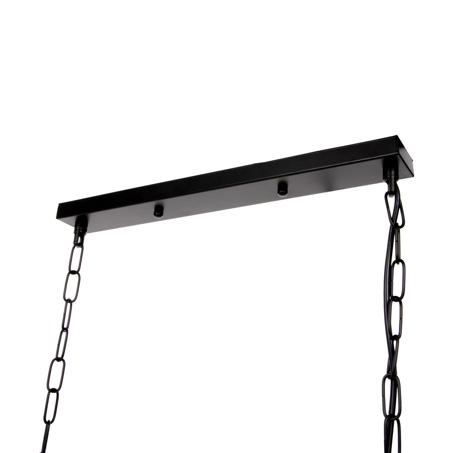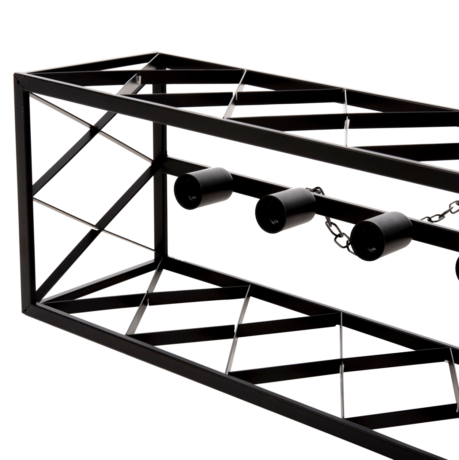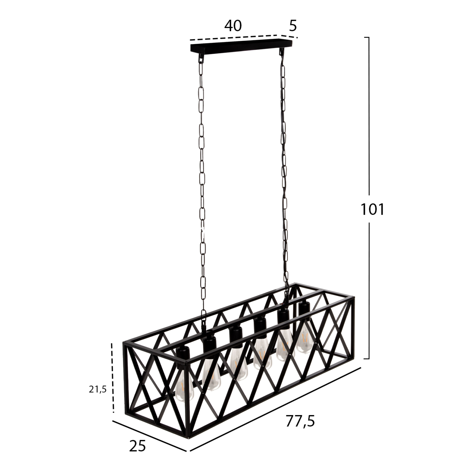 HΜ4128—Ανακαλύψτε τα νέα φωτιστικά στην γκάμα μας και ολοκληρώστε την διακόσμησή σας. Πρόκειται για ένα φωτιστικό με 6 λάμπες που κρέμεται με αλυσίδες από την βάση της οροφής. Το ορθογώνιο μεταλλικό καπέλο σε ΜΑΥΡΟ χρώμα δεν εμποδίζει καθόλου το φως να φτάσει σε κάθε γωνιά, και είναι η επιτομή του μοντέρνου design στα φωτιστικά οροφής.