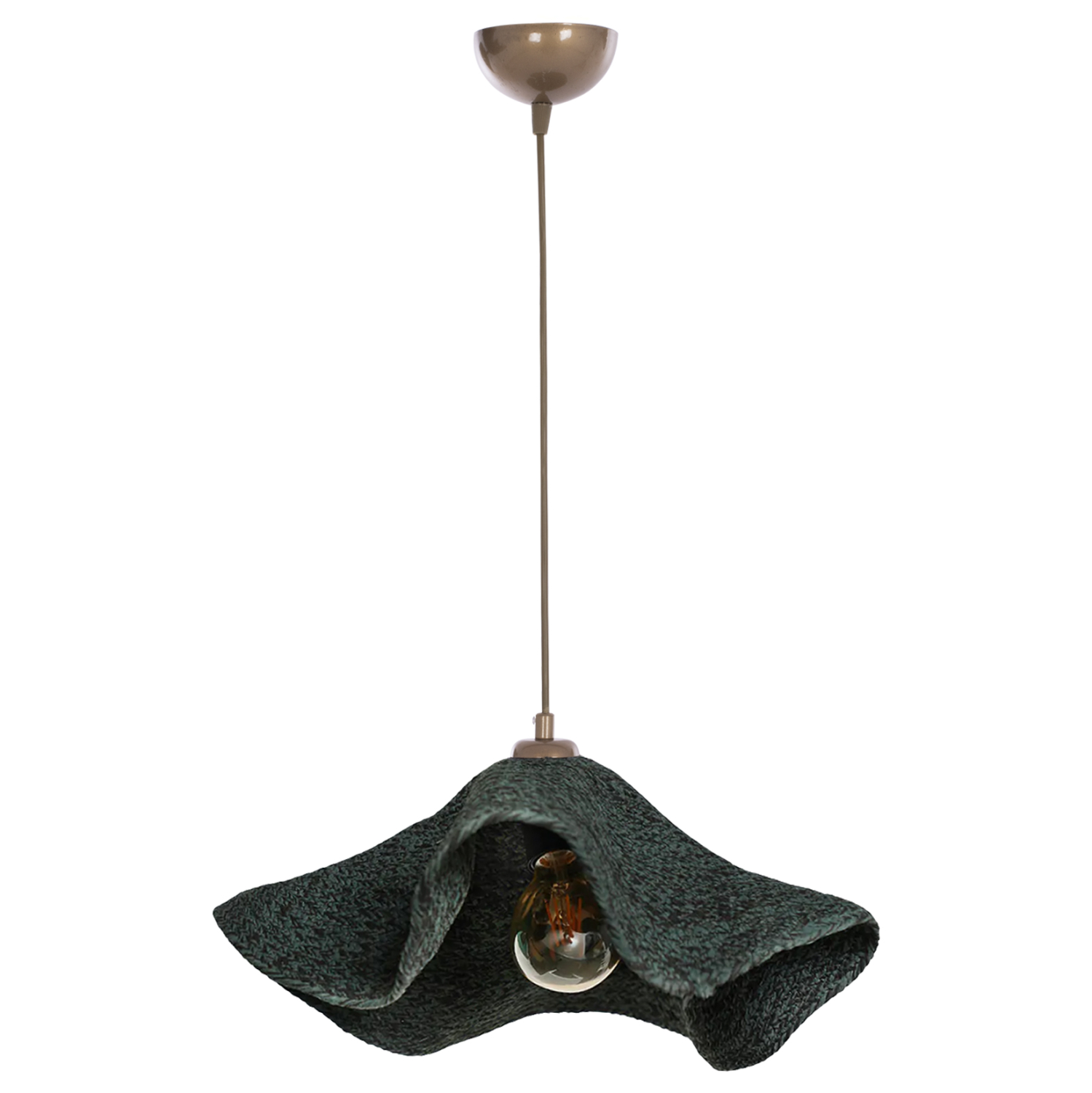 HM7649.03-Φωτιστικό οροφής —–Άφησε το φως να απλωθεί στον χώρο με ένα πρωτότυπο και φινετσάτο μονόφωτο φωτιστικό που θα ολοκληρώσει τη διακόσμησή σου. Φωτιστικό οροφής σε ΠΡΑΣΙΝΟ χρώμα με ΧΡΥΣΟ καλώδιο κρέμασης. Το «καπέλο» έχει την μορφή ψάθινου καλοκαιρινού καπέλου διαχέοντας το φως προς τα κάτω, και δίνει μια ανέμελη αίσθηση στον χώρο.