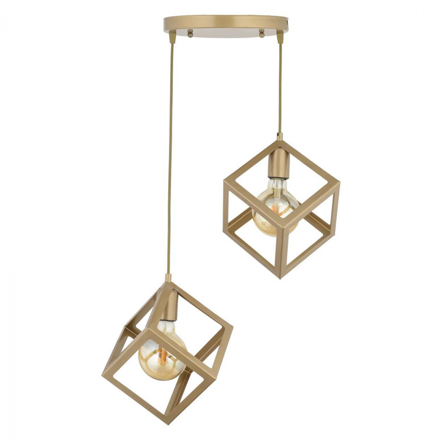 Φωτιστικό οροφής, δίφωτο, σε χρυσή απόχρωση και σχήμα κύβου.