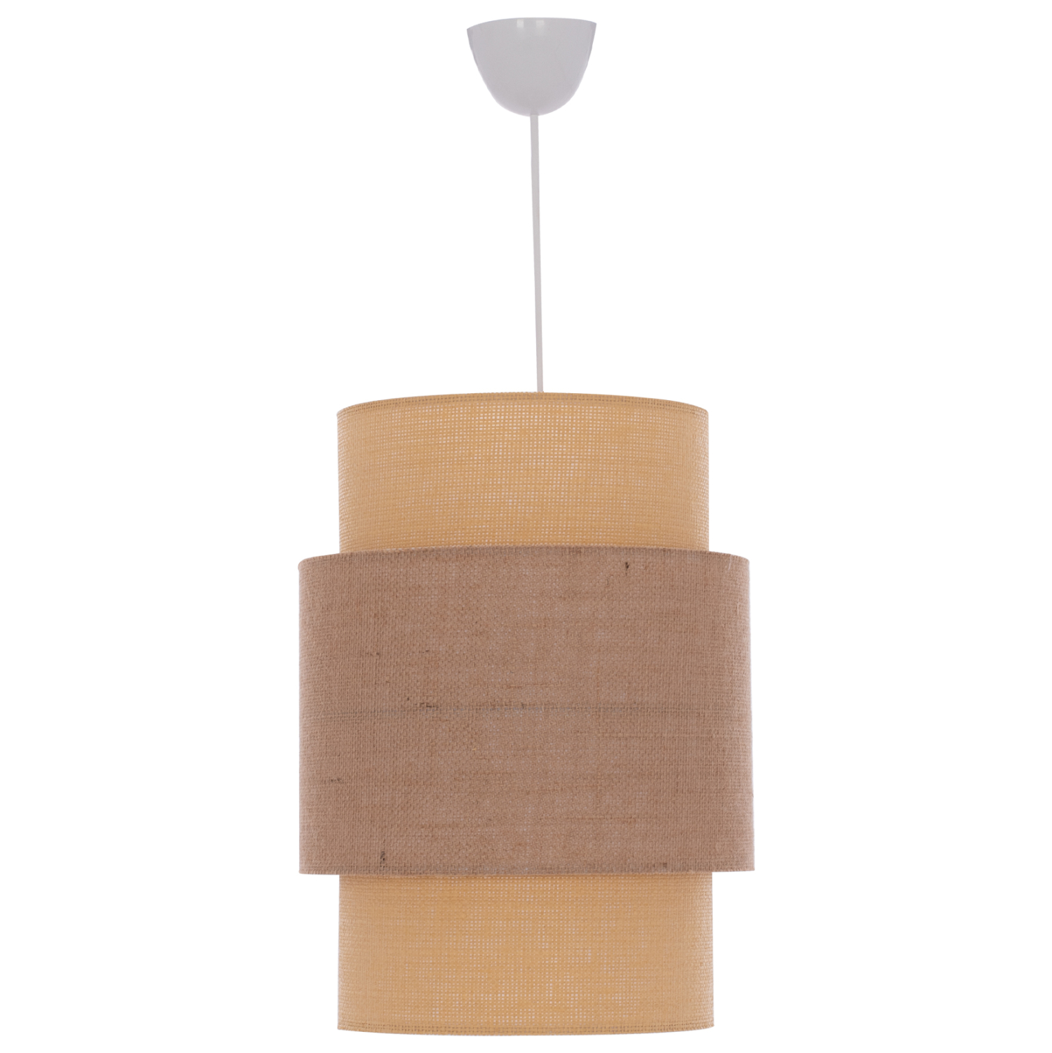 ΠΛΕΟΝΕΚΤΗΜΑΤΑ: Η αισθητική υπεροχή αυτού του φωτιστικού θα το κάνει να ξεχωρίζει στον χώρο σας γιατί έχει μια απλοϊκή αλλά καλλιτεχνική εμφάνιση. Ο πλαστικός του σκελετός είναι άψογα κατασκευασμένος ενώ το τύμπανο έχει δύο δακτυλίους. Ο εξωτερικός δακτύλιος είναι κατασκευασμένος από μπεζ της άμμου ύφασμα, ενώ το εσωτερικό από μπεζ ύφασμα. Το αποτέλεσμα είναι εξαιρετικά κομψό σε εμφάνιση. Καταφέρνει να συνδυάσει μια ελκυστική και μοντέρνα γοητεία με το ιδανικό μέγεθος, προσθέτοντας έτσι μια όμορφη διακόσμηση στην οροφή σας. Το ρυθμιζόμενο ύψος του μπορεί να προσφέρει διαφορετικά επίπεδα φωτεινότητας και οπτικής απόλαυσης. Εκτός από διάφορα δωμάτια του σπιτιού σας, μπορεί, επίσης, να ταιριάξει και σε επαγγελματικούς χώρους όπως εστιατόρια, καφέ, ξενοδοχεία κτλ. Τα χρώματα του φωτιστικού και το design αιχμαλωτίζουν τα βλέμματα, αλλά ταυτόχρονα απαιτείται και ιδιαίτερη διακοσμητική συνοχή για να αναδειχθούν πλήρως οι αισθητικές αρετές του.