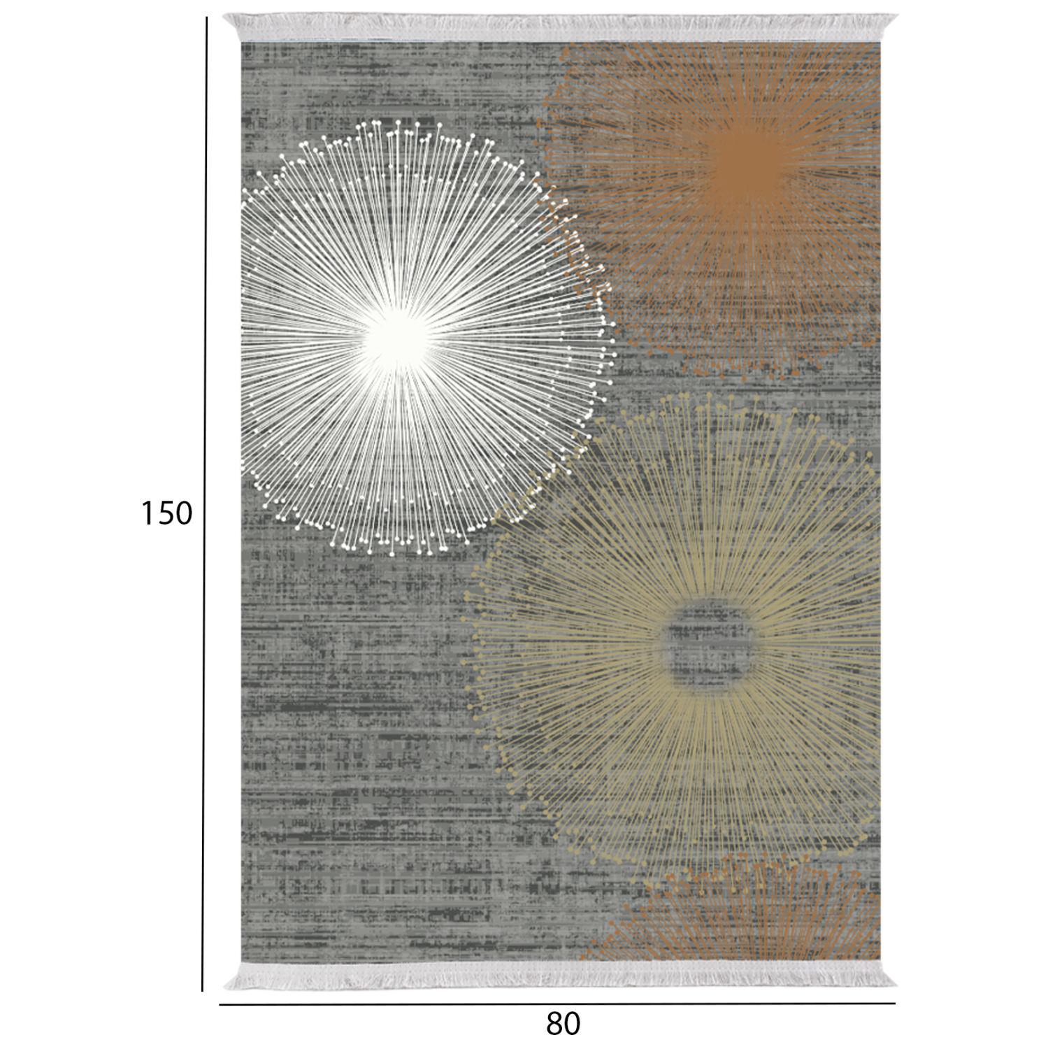 ΗΜ7676.44- χαλί σαλονιού—— Σας παρουσιάζουμε την νέα προσθήκη στην γκάμα των προϊόντων μας. Αυτό το χαλί απεικονίζει πολύχρωμα κυκλικά σχέδια σε ΓΚΡΙ φόντο.